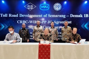 中国国际劳务网11月25日报道:近日,中国路桥与印尼国企WIKA、PP签署三宝垄至德马克收费公路项目1B标段(三宝垄项目1B标段)联合体实施协议,三方合作进入实质性阶段。中交集团副总经理陈重、中国路桥总经理王利军出席签约仪式。