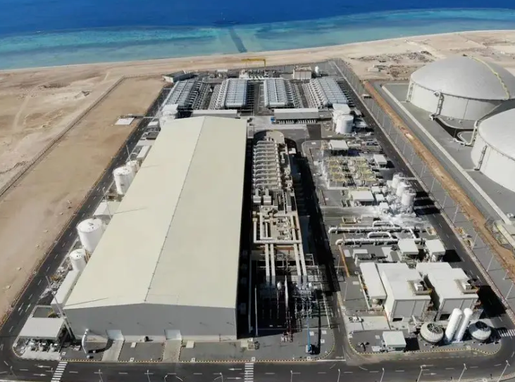 项目位于沙特红海沿岸拉比格市,采用100%反渗透海水淡化技术,日产水量60万立方米,主要为圣城麦地那供水。