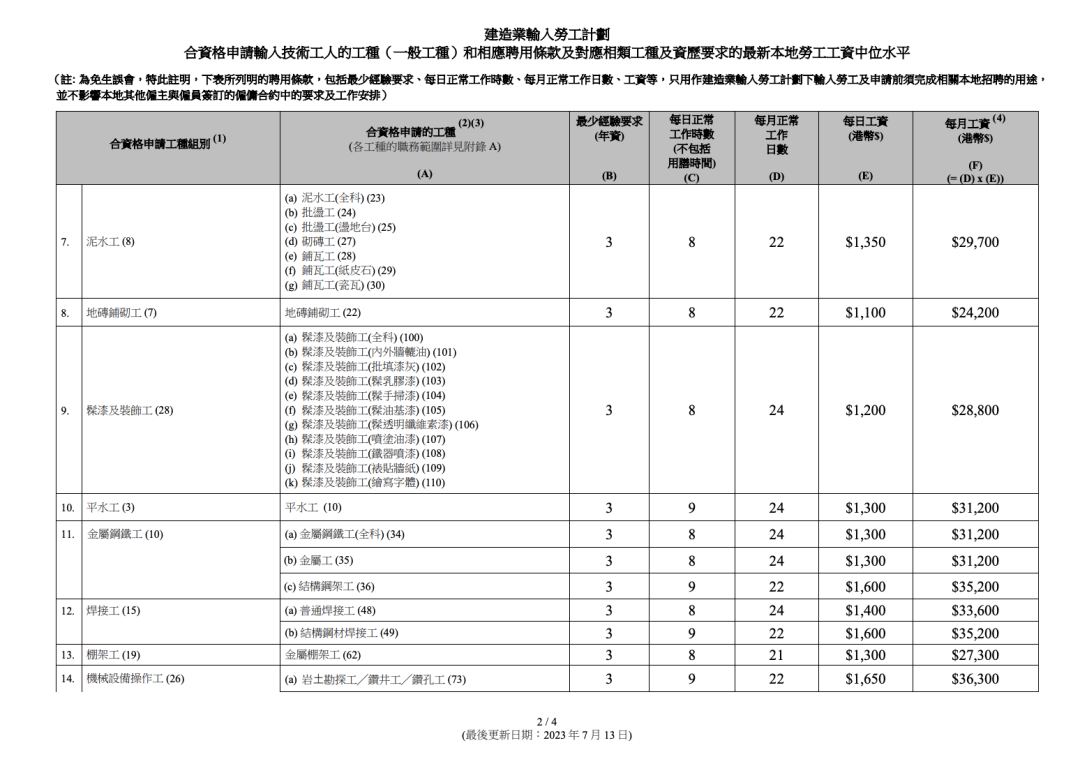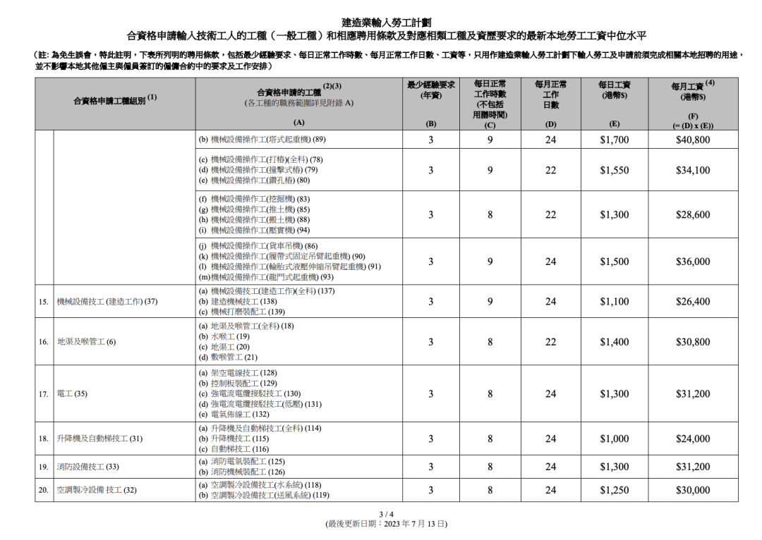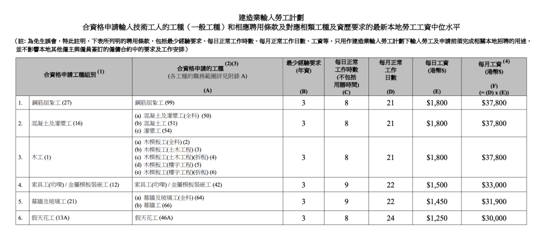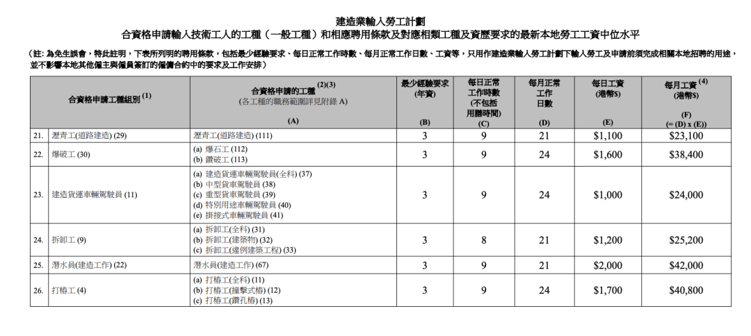 香港政府颁布的新的输入劳工计划已于本周一(7月17日)开始接受申请,当中包括建造业、航空业和运输业等行业。