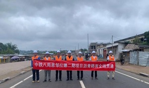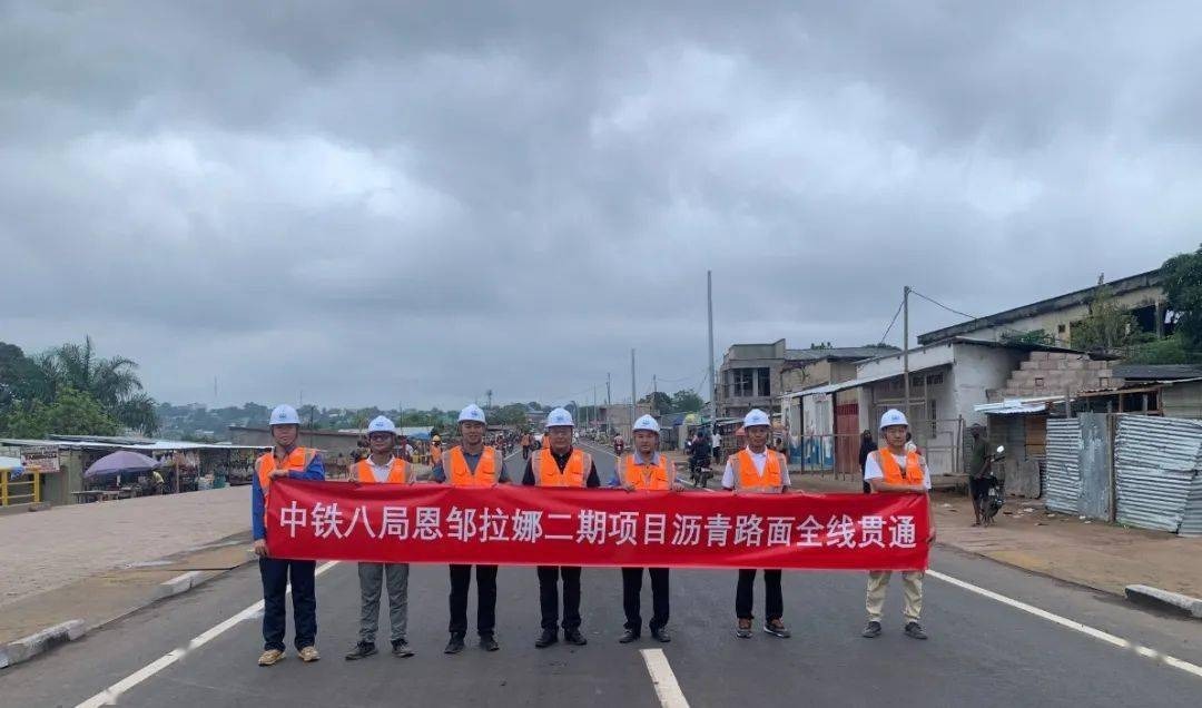 道路通,百业兴。基础设施是互联互通的基石,也是许多国家发展面临的瓶颈。今年5月,习近平主席在北京人民大会堂同来华进行国事访问的刚果(金)总统齐塞克迪举行会谈时指出:“中方愿一如既往帮助刚果(金)经济社会发展,支持刚果(金)工业化战略,加强能源、矿产、农业、基础设施、制造业等领域合作。”恩邹拉娜二期道路工程是两国元首会谈后率先完成主体工程的重要基础设施工程,也是中铁八局肩负央企使命担当,以实际行动践行“一带一路”倡议的最好诠释。恩邹拉娜大街修复和现代化项目(二期)位于刚果(金)首都金沙萨西南城乡结合部,是连接金沙萨解放大道与卢当德里路的重要通道。中铁八局承建的恩邹拉娜二期道路建设项目施工内容为冲沟整治和7公里道路主线及部分支线的修建。作为中刚互利友好“一揽子”合作协议基础建设重点项目,恩邹拉娜二期道路工程受到当地政府的高度重视,当地媒体多次进行报道。项目建设期间,刚果(金)国务委员兼基础建设与公共工程部部长与刚果(金)国家大型工程局局长多次亲临项目施工现场检查指导,并对中铁八局的施工能力给予高度评价。