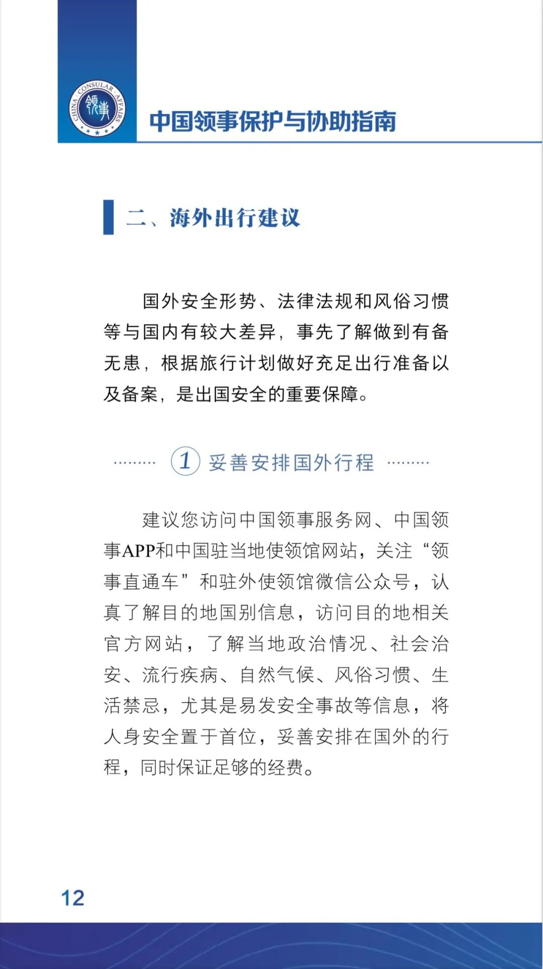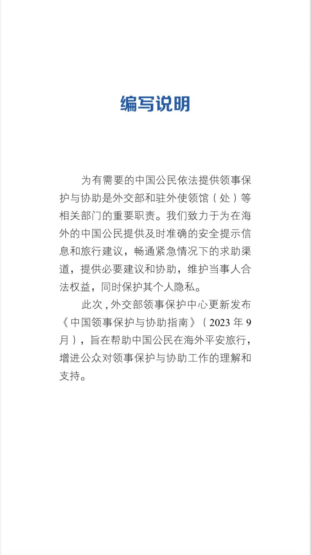 出国之家2023年11月21日报道 多年来,外交部领事保护中心持续编印更新《中国领事保护与协助指南》,旨在帮助在海外和计划赴海外的中国公民更好地了解各类海外安全风险,提升安全防范意识和能力。2023年9月1日,《中华人民共和国领事保护与协助条例》正式施行。根据《条例》精神并结合海外安全形势变化,领事保护中心近日发布新版《中国领事保护与协助指南》。
