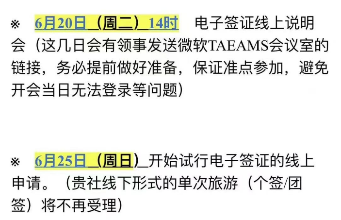 再来说说上海领区,6月20日下午上海领区召开试点送签社电子签线上说明会,6月25日开始试行电子签证的线上申请,届时不再受理试点社线下形式送的单次旅游签。