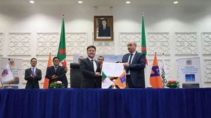 签约仪式在首都阿尔及尔奥拉西酒店会议厅举行,本次签约仪式同时签署迈盖耶尔省200兆瓦光伏发电厂项目合同。阿尔及利亚能源和矿业部长Mohamed Arkab、阿尔及利亚环境和可再生能源部长Fazia Dahleb、阿尔及利亚国家电力和天然气集团(SONELGAZ集团)董事长Mourad Adjal、阿尔及利亚碳氢化合物管理局局长Rachid Nadil、中建阿尔及利亚公司总经理罗建鹏、阿尔及利亚可再生能源领域多名特邀专家教授等出席签约仪式。瓦德省300兆瓦光伏发电厂项目合同内容包括光伏发电厂设计、土木工程、供货、运输、安装、培训、调试、试运行及并网工程。在国家可再生能源发展政策的框架下,本次发布的1000兆瓦光伏发电厂项目是政府委托SONELGAZ集团的15000MW可再生能源规划中的第二个项目,同样承载了重要的战略使命。这两个项目建成后,将大幅提升阿尔及利亚可再生能源产能,有助于该国实现能源转型目标,这些项目也将成为中阿两国能源合作的重要成果,进一步加强两国在能源领域的合作。