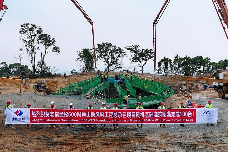 出国之家2024年3月27日报道 当地时间3月24日,中国电建承建的老挝孟松600兆瓦山地风电项目2号场区WA225风机基础浇筑顺利完成,至此,该项目风机基础浇筑累计达100台。这一重要里程碑建设节点的圆满完成为顺利推进风机吊装和项目并网发电打下了坚实基础。