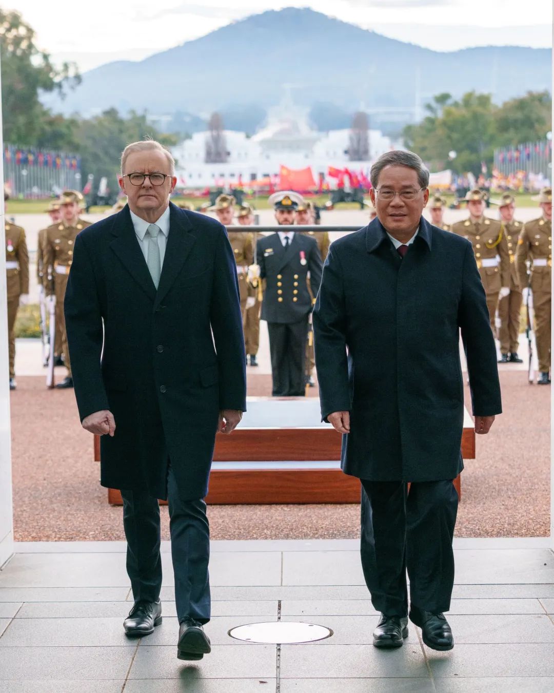 自2022年5月以来,中澳关系逐步回暖。总理在抵澳后也发表声明,指双边关系“在经历波折后重回正确发展轨道”,“我在中澳建立全面战略伙伴关系10周年之际到访澳大利亚,期待同澳方领导人和各界朋友就中澳关系和共同关心的问题深入交换意见,共商合作、共促发展、共话友谊。”