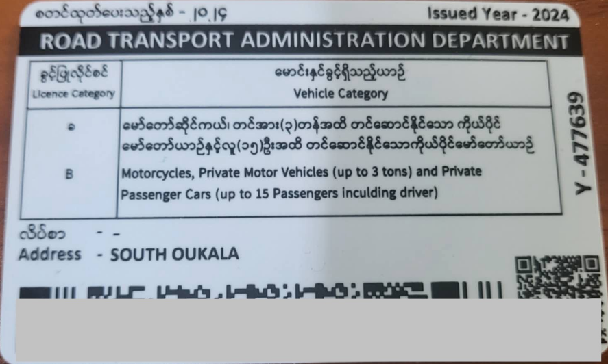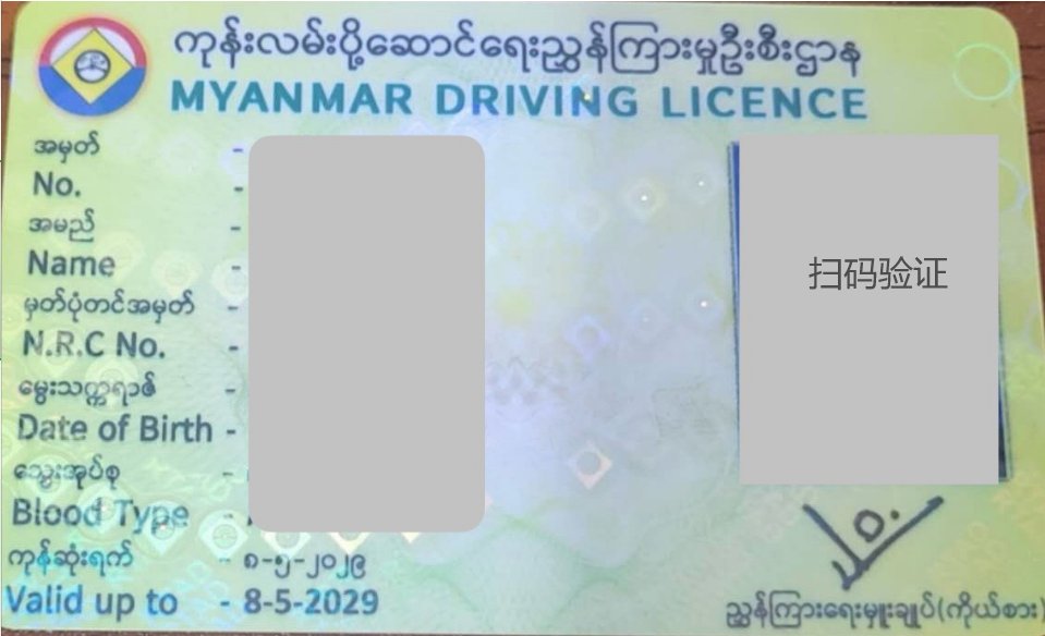 中国驾照免考试换缅甸驾照(5年有效)