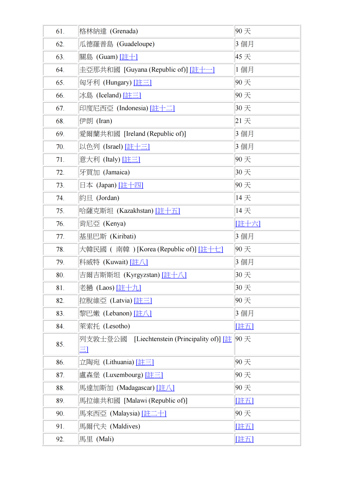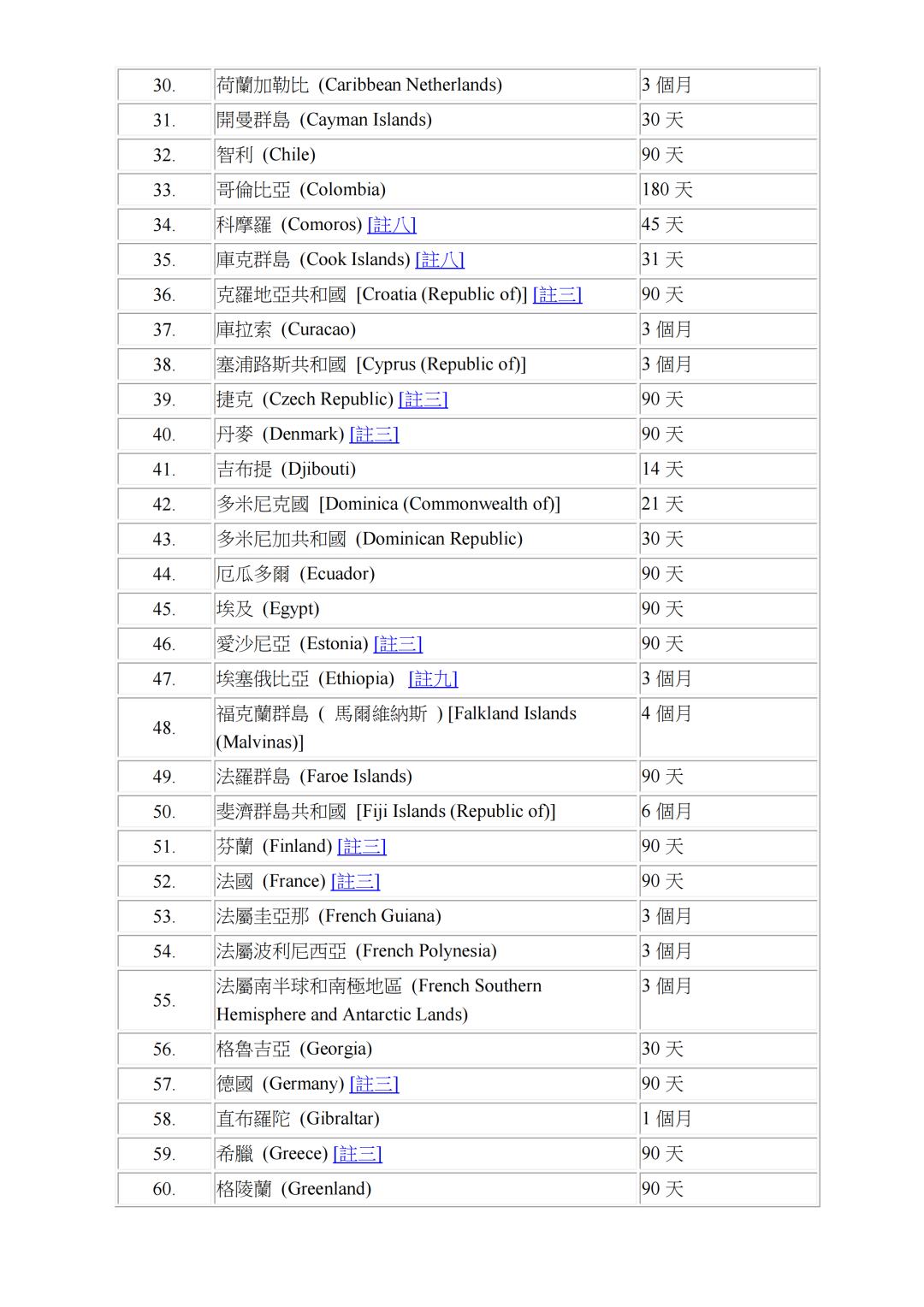中国澳门排32位,中国台湾排33位,中国内地排59位。分别免签141、139、81个国家和地区。