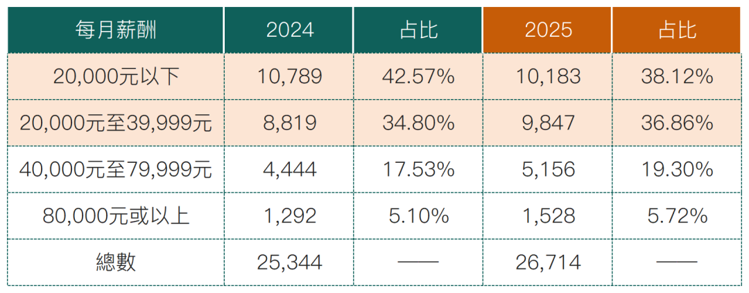 获批案例中,学士及以下学历占比超过75%,薪酬方面,中高收入群体增加,月薪2万-4万港元区间人数逼近2万以下群体。