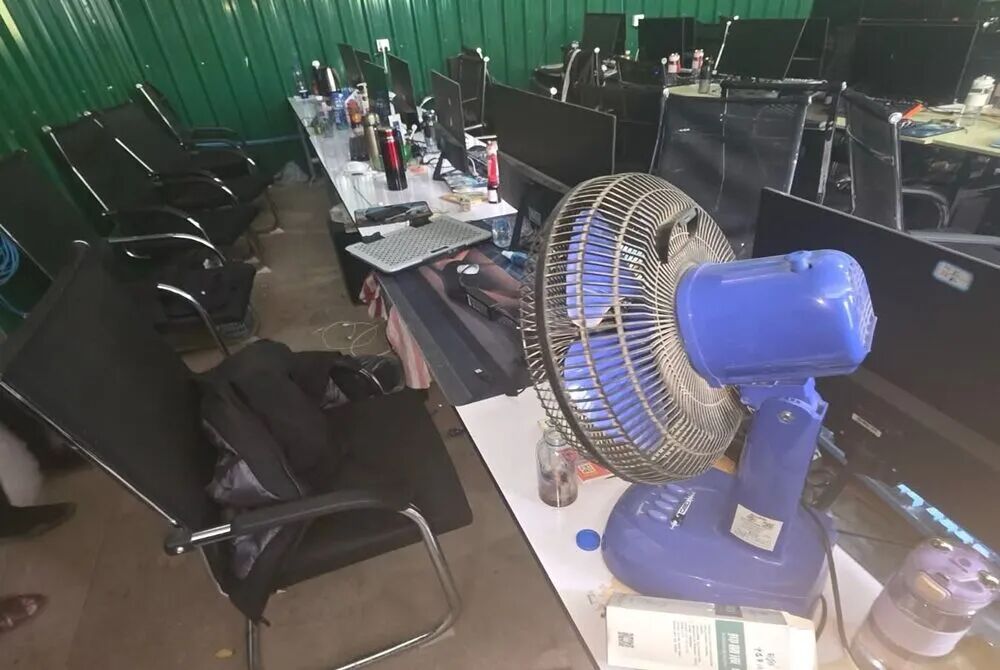 现场调查发现,该区域内建有多栋以铁板搭建而成的建筑,被认为是相关团伙的活动据点。其中一栋主要建筑长120英尺、宽60英尺,内部查获电脑显示屏120台、系统设备箱97个、电脑46台、“星链”互联网连接设备12台、无线网络设备12台、各类手机105部,以及1台大型发电机。