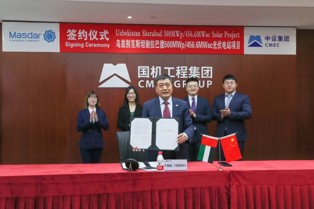 10月18日,国机工程集团总部(中设集团)签署乌兹别克斯坦500MWp/456.6MWac光伏电站项目EPC总承包合同。公司总经理方彦水与业主代表Masdar清洁能源集团执行总监Mohammed以“云